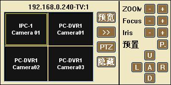 按鈕可以控制選中窗口的PTZ。